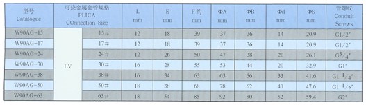 普利卡防水混合連接器W90AG規(guī)格表
