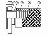 結(jié)構(gòu):外螺紋接頭波紋管 特點(diǎn):結(jié)構(gòu)簡(jiǎn)單,通用性好 材料: (1)外螺紋接頭:不銹鋼; (2)網(wǎng)套緊環(huán):不銹鋼; (3)金屬波管:SUS301/304; (4)網(wǎng)套:SUS301/304 |